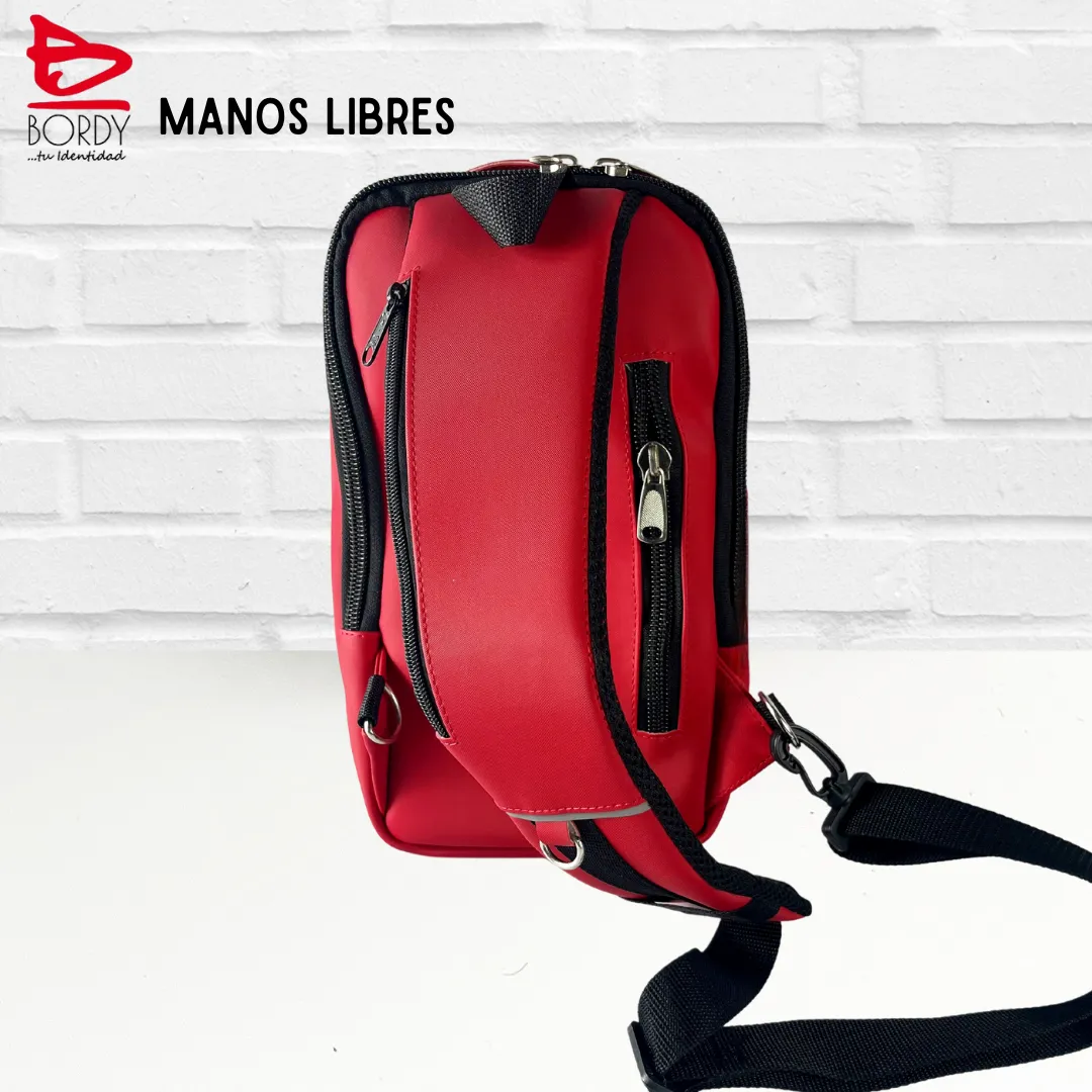 Este morral manos libres tiene dos compartimentos con cierre #10. Logo BORDY en placa metalica. Cierres o cremalleras #10 y Slider #10 (Jalador de cierre).  Escoge el color de tu morral manos libres BORDY.